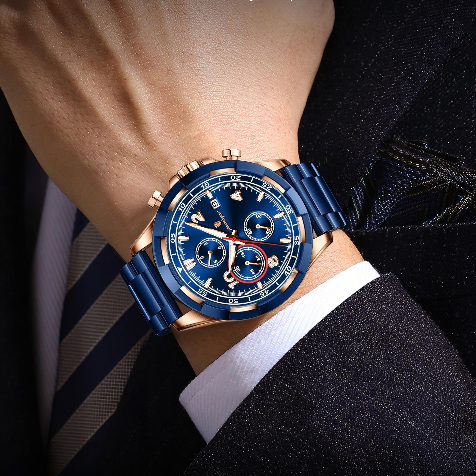 POEDAGAR 685 Luminous Water Resistant Stainless Steel Watches for Men
